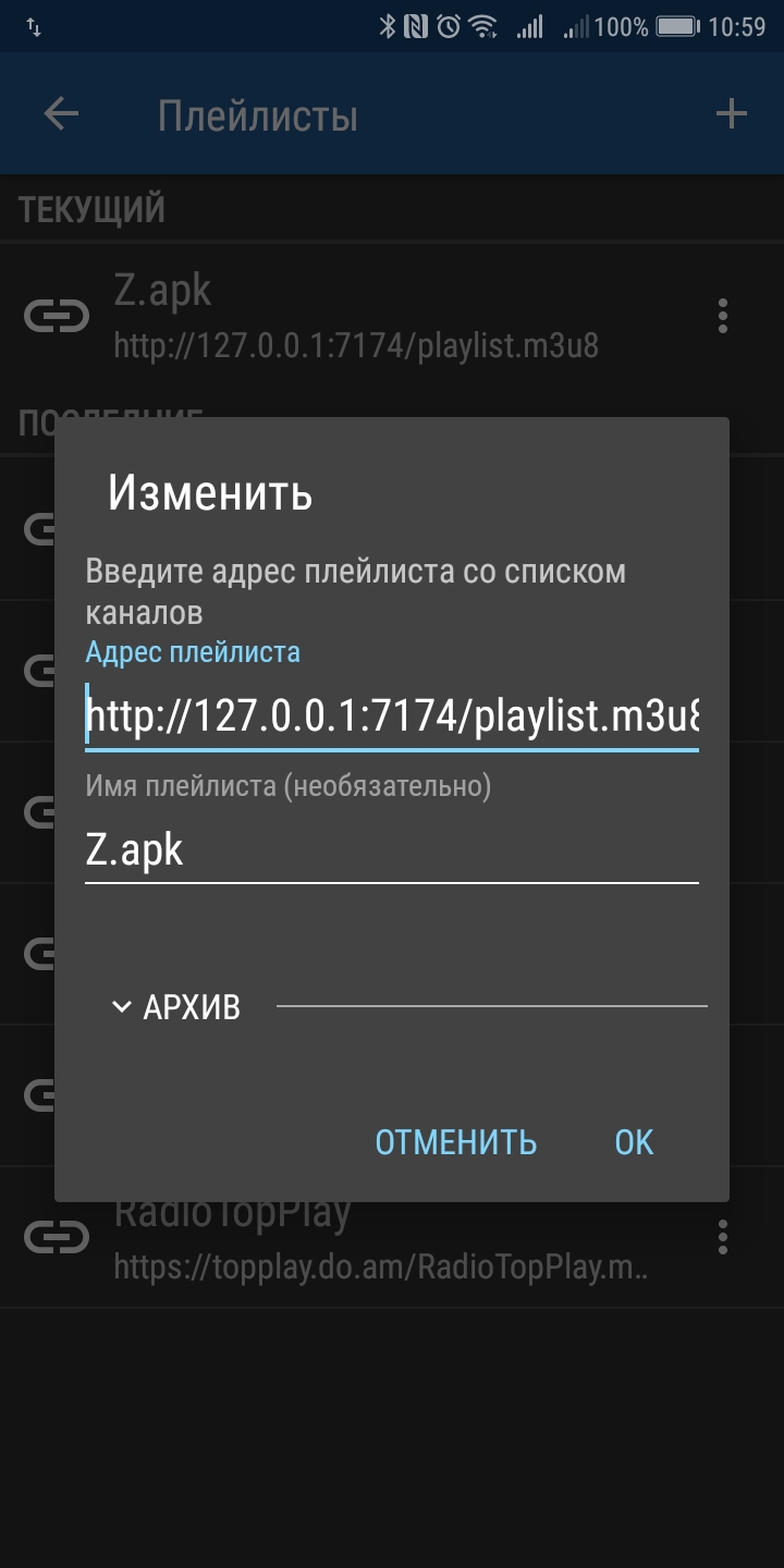 - это значит, ZMP запустился и предложил нам плейлист: http://192.168.xxx.xxx:7171/playlist.m3u8
