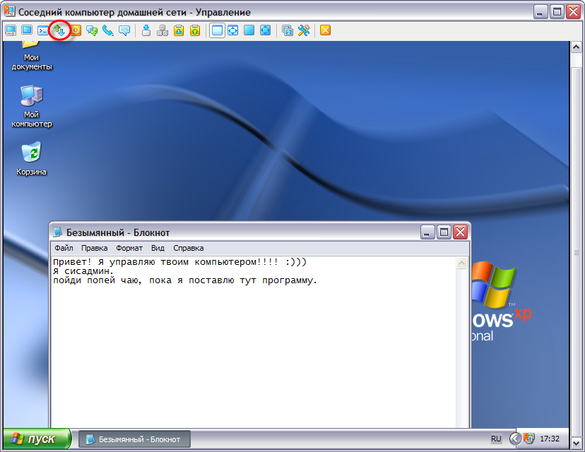 Ниже вы можете увидеть пример окна с сообщением, которое получил от нас пользователь удаленного компьютера.