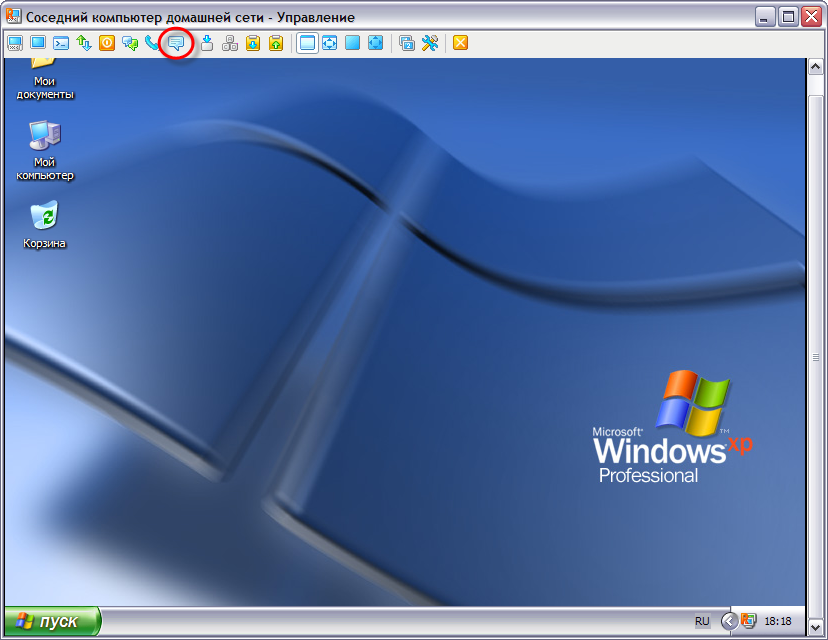 2. Текстовый чат. Для общения с пользователями удаленных компьютеров в Radmin встроен удобный инструмент – голосовой и текстовый чаты. Для входа в чат достаточно нажать кнопку «Соединение в режиме текстового чата».