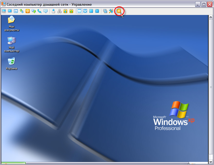 Окно управления удаленным компьютером позволяет производить с ним различные операции, в том числе обмениваться файлами, общаться в чате, выключать или перезагружать.