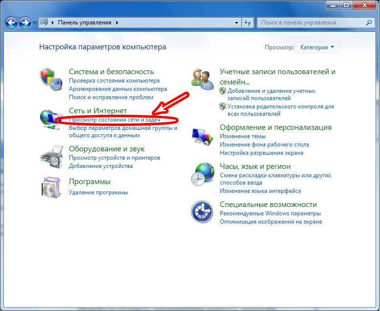 2. В разделе Сеть и Интернет нажмите на Просмотр состояния сети и задач.