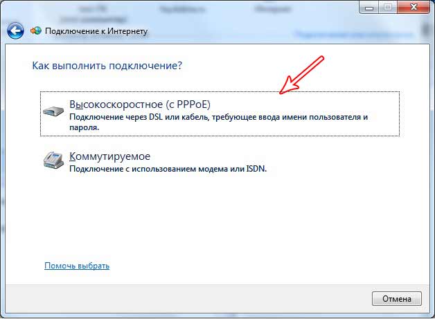 6. Выберите Высокоскоростное (с PPPoE)