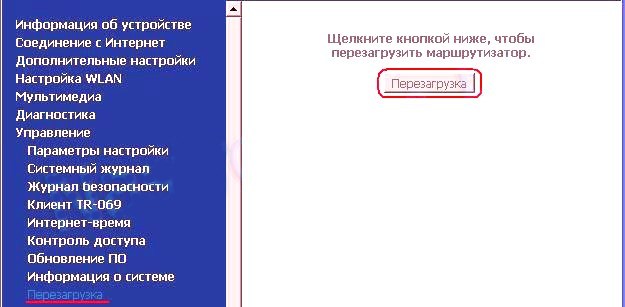 После настройки — перезагрузите устройство с новыми параметрами. Для этого перейдите в раздел Управление -> Перезагрузка.