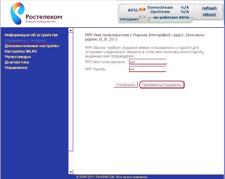 Здесь уже меняем логин и пароль, нажимаем Применить/Сохранить.
