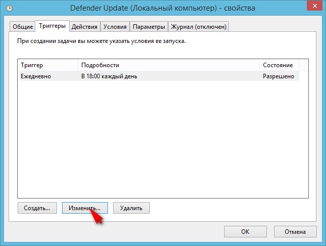 В появившемся окне перейдите на вкладку "Триггеры" и измените имеющийся там триггер:
