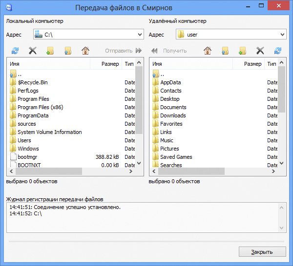 Все версии TeamViewer включают полную поддержку передачи и копирования файлов и папок. Для обеспечения максимальной скорости перед передачей все данные автоматически сжимаются. |