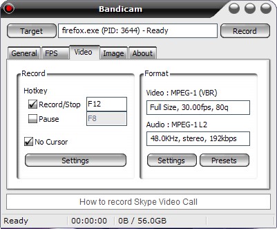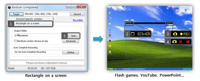 Bandicam позволяет записывать определенную область на экране компьютера, или программу, которая использует DirectX / OpenGL графические технологии. Bandicam является аналогом программы FRAPS и она поможет вам осуществлять запись видео с высокой степенью сжатия, сохраняя при этом качество видео близкое к оригинальному, а производительность программы намного превосходит производительность других программ, которые предоставляют аналогичные функции.