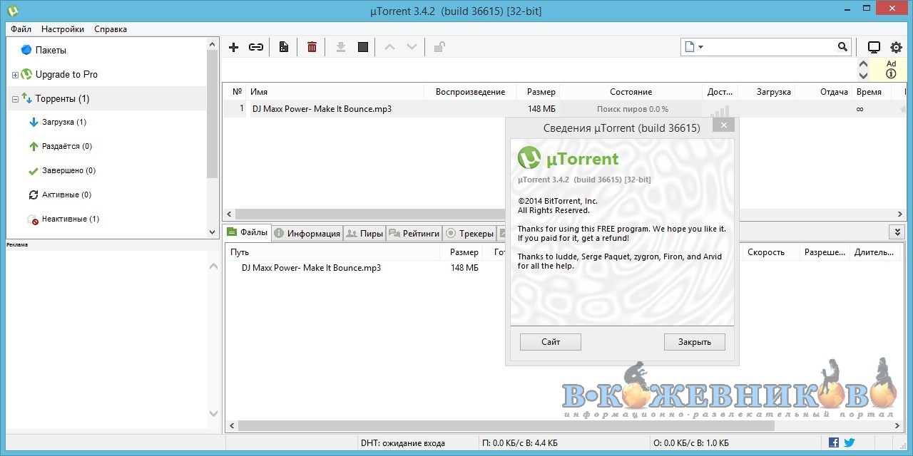µTorrent - мощный клиент сети BitTorrent. µTorrent основан на протоколе Bittorrent.